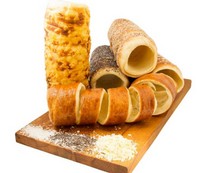 Hierzu wird ein Streifen Hefeteig um eine Rolle gewickelt, mit Öl bestrichen, gezuckert und als einzelne Portion drehend in einem speziellen Ofen gebacken. Wenn der Teig durchgebacken und der Zucker karamellisiert ist, wird der Baumstriezel nun mit Zimt-/Vanillezucker, gehackten Nüssen/Mandeln und ähnlichem bestreut.